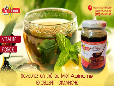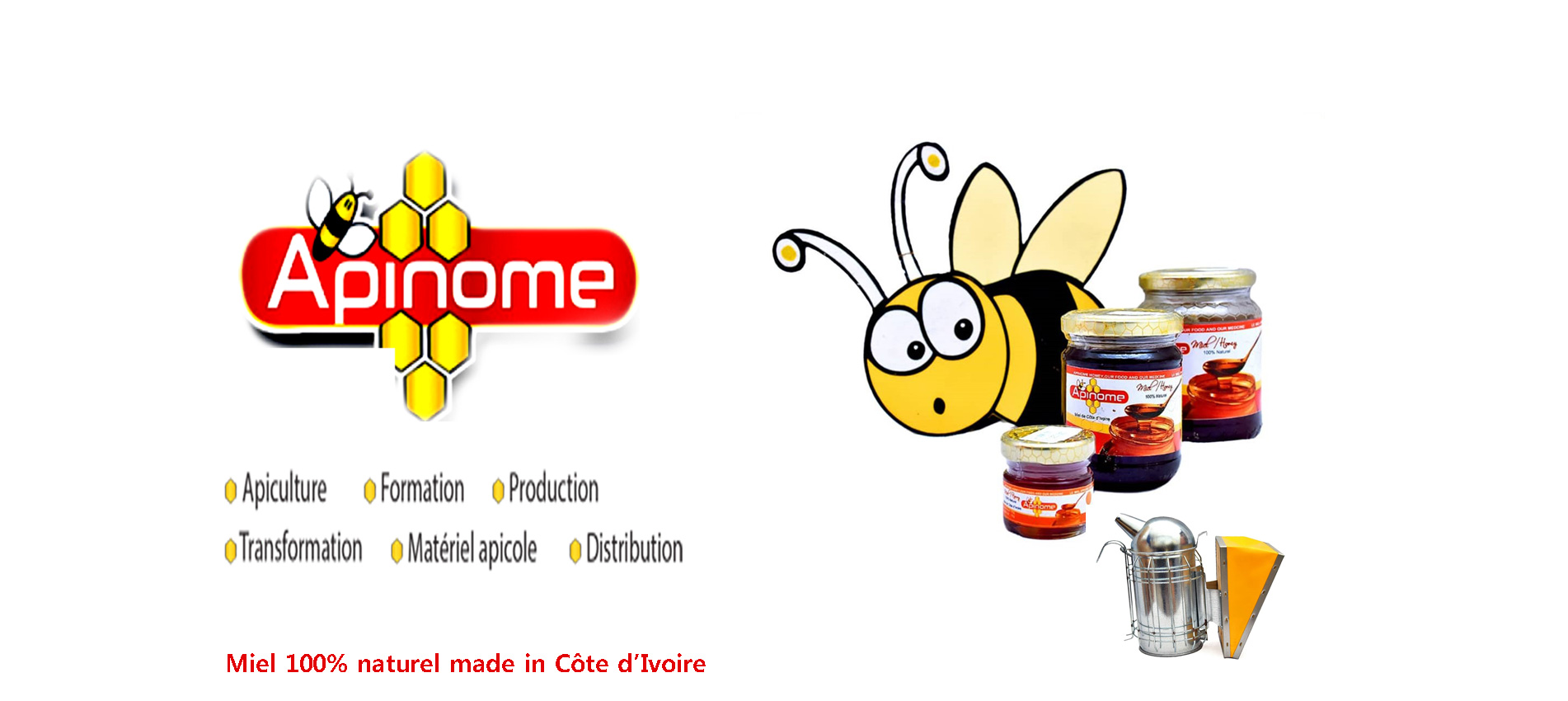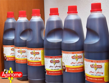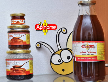 Le Miel Apinome est récolté, traité et conditionné par nos techniciens formés aux normes du code alimentarus. Le miel est conditionné dans des bocaux en verres de divers grammages. En vue de mieux conserver les vertus du miel, il est recommandé de conserver le miel dans du verre. Notre Miellerie est située à Ellibou à 75 Km d'Abidjan et elle offre les meilleures garanties de par son équipement et son processus validé par des laboratoires de référence du pays. APINOME a formé et installé des apiculteurs sur tout le territoire national : Nord, Nord-Est, Nord-Ouest, Ouest et Centre. Ces apiculteurs produisent le miel de qualité permettant d'approvisionner l'unité de transformation de miel APINOME.